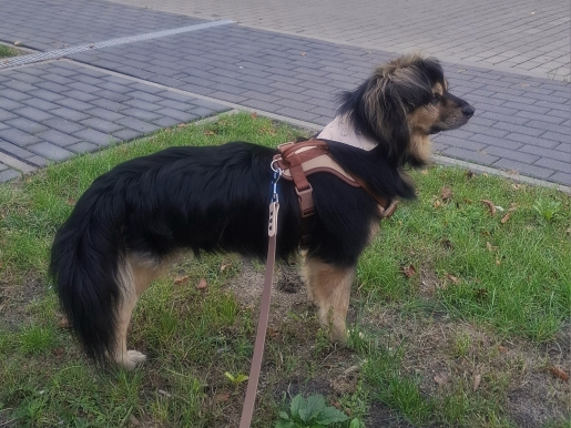 Super high-quality harness, size L fits dogs between 15kg and 25-30kg I would say, my 11-month-old mixed Malinois weighs 17kg and this harness is incredible. Delivery quite fast.